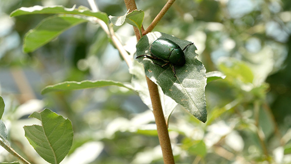 雨水の保水力を高める為に、植栽部分以外にも人口土壌が使用されており、農薬、肥料も一切使用しておりません。堆積した落ち葉が表土となって微生物や昆虫も生息していますので、その虫を食べに鳥が集まり、実を落とし新しい植物が芽生えるという生態系ができています。